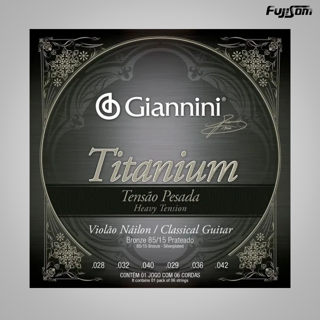 ENCORDOAMENTO PARA VIOLÃO DE NYLON, SÉRIE TITANIUM, TENSÃO PESADA, BRONZE 85/15 GENTWA - GIANNINI*Produto sujeito a alteração sem aviso previo, imagem meramente ilustrativa |