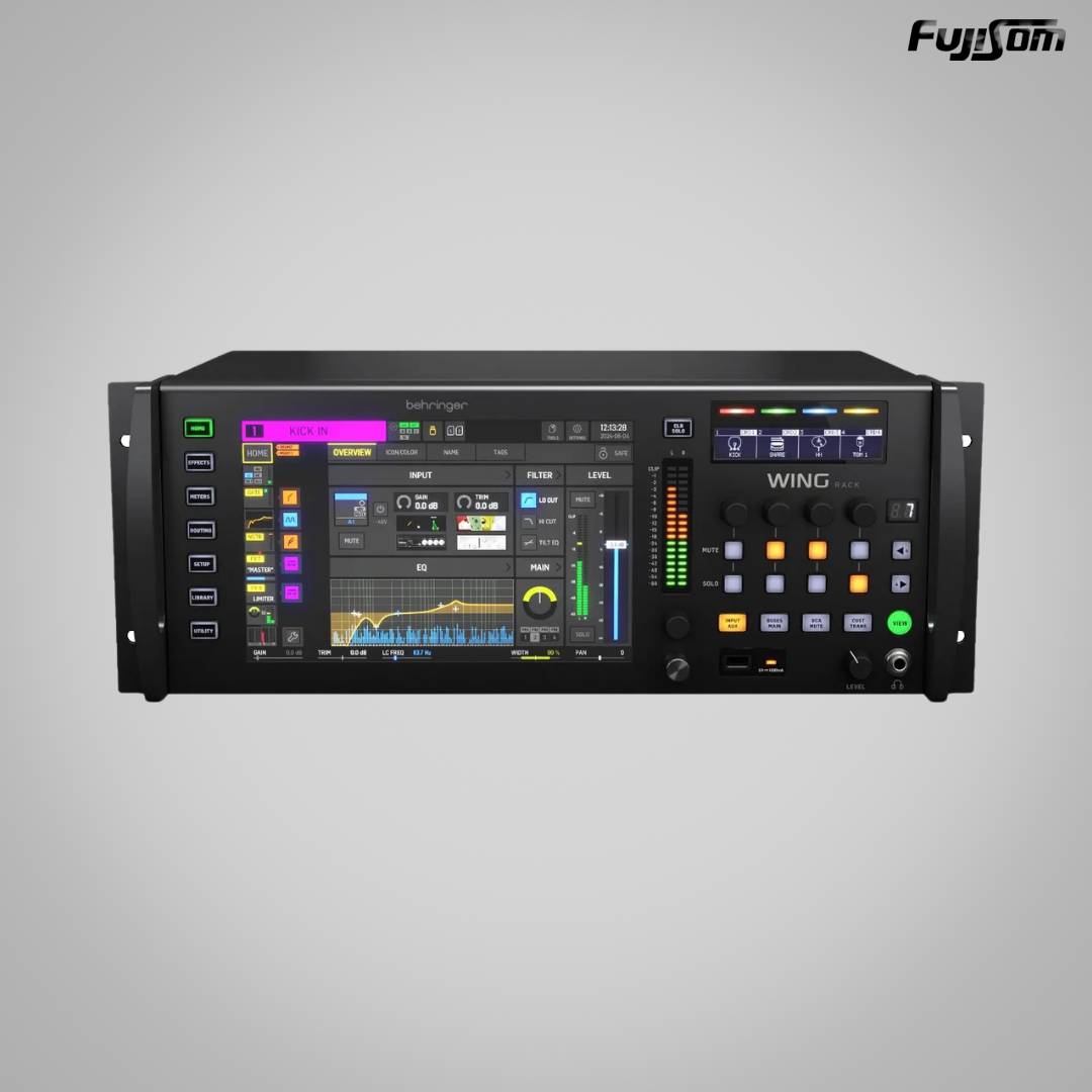 Entre seus destaques, a Wing Compact apresenta três portas AES50, proporcionando conectividade de até 144 canais de entrada e saída, com latência ultrabaixa de apenas 6 amostras. A integração de um módulo interno de áudio sobre IP (AoIP) permite a expansão para redes Dante e Waves SoundGrid, enquanto um gravador/reprodutor em cartão SD duplo suporta até 64 trilhas simultâneas. Com 16 processadores de efeitos estéreo, mais de 80 algoritmos de alta qualidade e 40 canais de entrada estéreo equipados com cinco slots de processamento por canal, esta mesa é uma verdadeira central de mixagem criativa. Compacta e poderosa, a Behringer Wing Compact combina desempenho profissional com design ergonômico, sendo uma escolha ideal para quem busca inovação e excelência no controle de áudio.