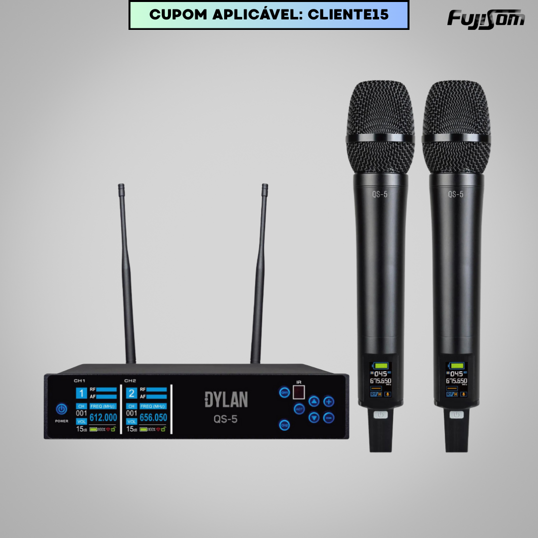 MICROFONE DYLAN S/FIO QS-5 MAO DUPLO 300 CANAIS