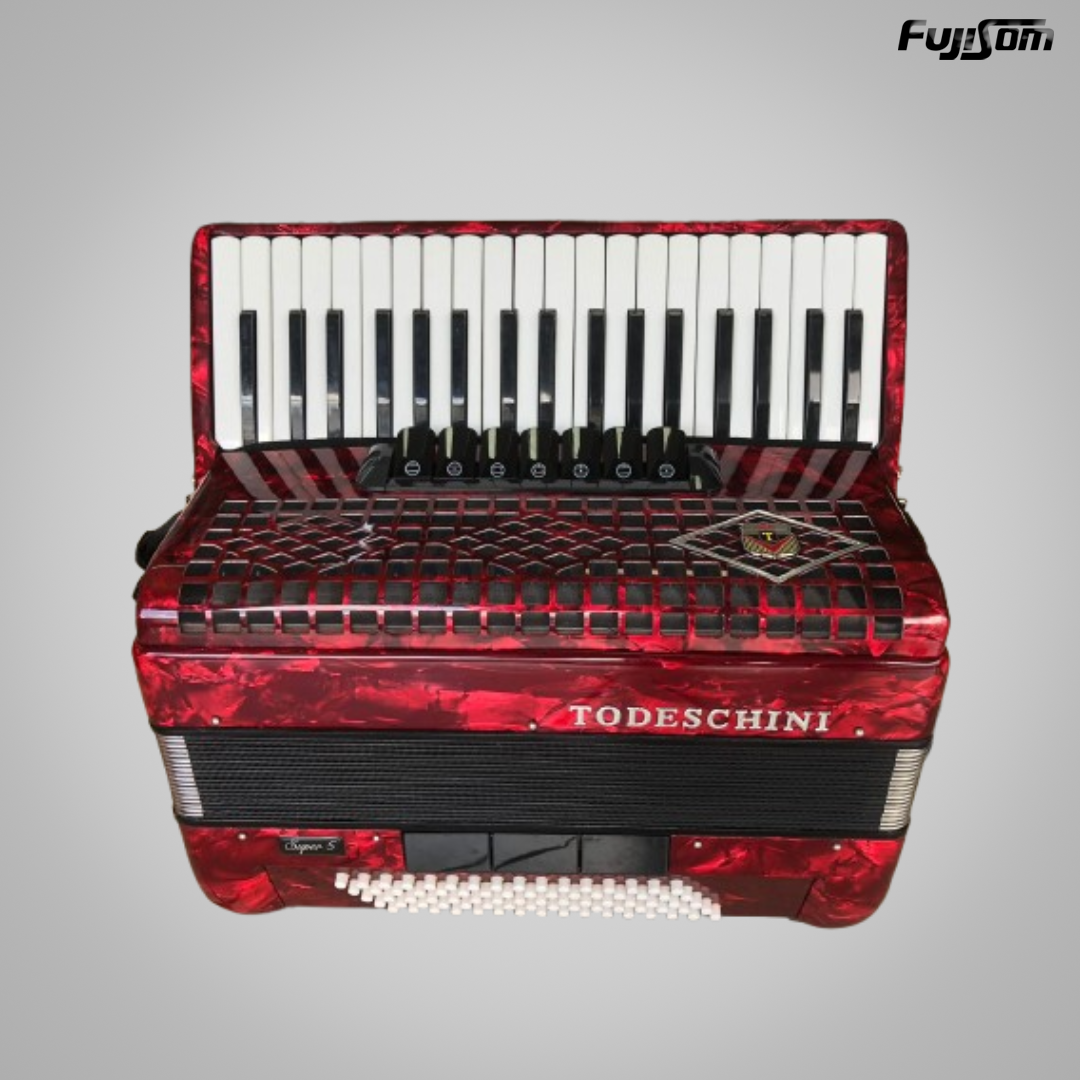 O Acordeon Todeschini Yw870 é um instrumento musical de design elegante e vibrante, na cor vermelha, que oferece um som rico e versátil. Com 80 baixos e 37 teclas, é ideal para uma ampla gama de estilos musicais, desde o folclórico até o popular. Seus 7 registros permitem ao músico explorar diversas timbres e nuances, proporcionando uma experiência musical completa e envolvente. EspecificaçõesTeclas: 37 teclas dispostas em 2 fileiras |