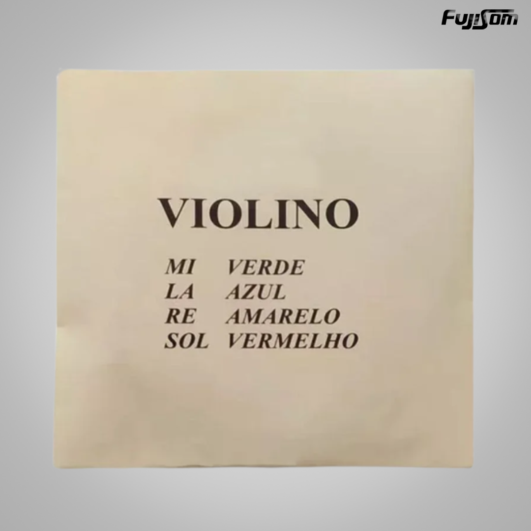 Jogo de Cordas para Violino - 4/4 - Mauro Calixto - Corda 1 – MI ( E ) (verde) - Corda 2 – LÁ ( A ) (azul) - Corda 3 – RÉ ( D ) (Amarelo) - Corda 4 – SOL ( SOL ) (Vermelho)